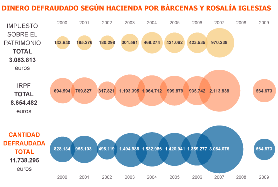 GRÁFICO Dinero defraudado según Hacienda por Luis Bárcenas y Rosalía Iglesias