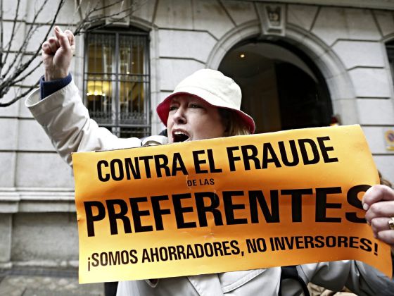 Una protesta de afectados por las preferentes ante la Audiencia Nacional. / EFE